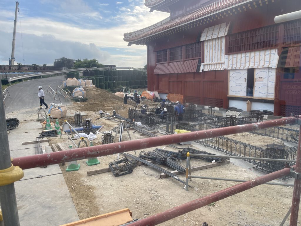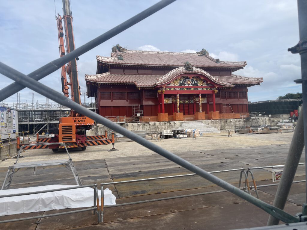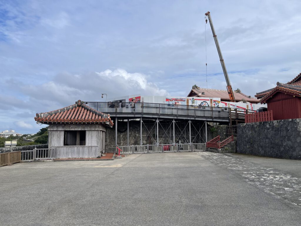 In 2019 hat dann der Burg ein verheerendes Feuer ziemlich zugesetzt, ähnlich wie die „Battle of Okinawa“ war der Grad der Zerstörung immens. Daher steht jetzt immer mal wieder ein schicker Baukran auf dem Weg zum perfekten Bild im Weg. Das Titelbild ist übrigens ein Marker, der die alten Steine der Grundmauern von den neu aufgesetzten unterscheidet. Was man wohl gemacht hat, damit man die ganze Pracht der imposanten Anlage erkennen kann.