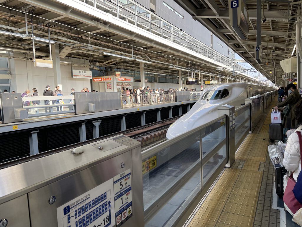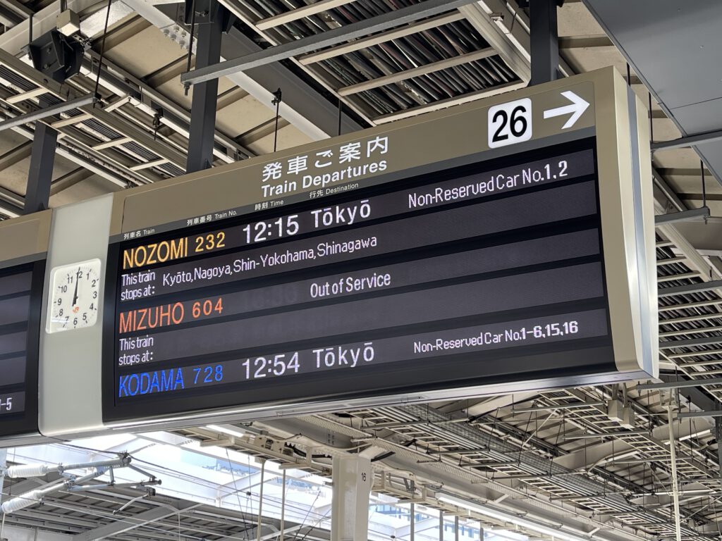 Danach war direkt der Shinkansen dran. Das Ticket ist wirklich recht einfach zu kaufen, da die Menüführung auf englisch eingestellt werden kann und jedes Detail inkl. Platzwahl damit erledigt wird. Nur an der Einlassschranke fiel ich blöd auf („bitte gehen Sie zu einem Angestellten…“) weil ich nur ein Ticket eingeschoben hatte – es müssen aber das Fahr- und auch das Platzteservierungsticket als Zweier-Stapel eingeschoben werden 🙈