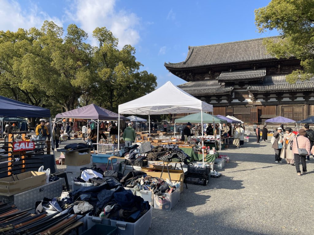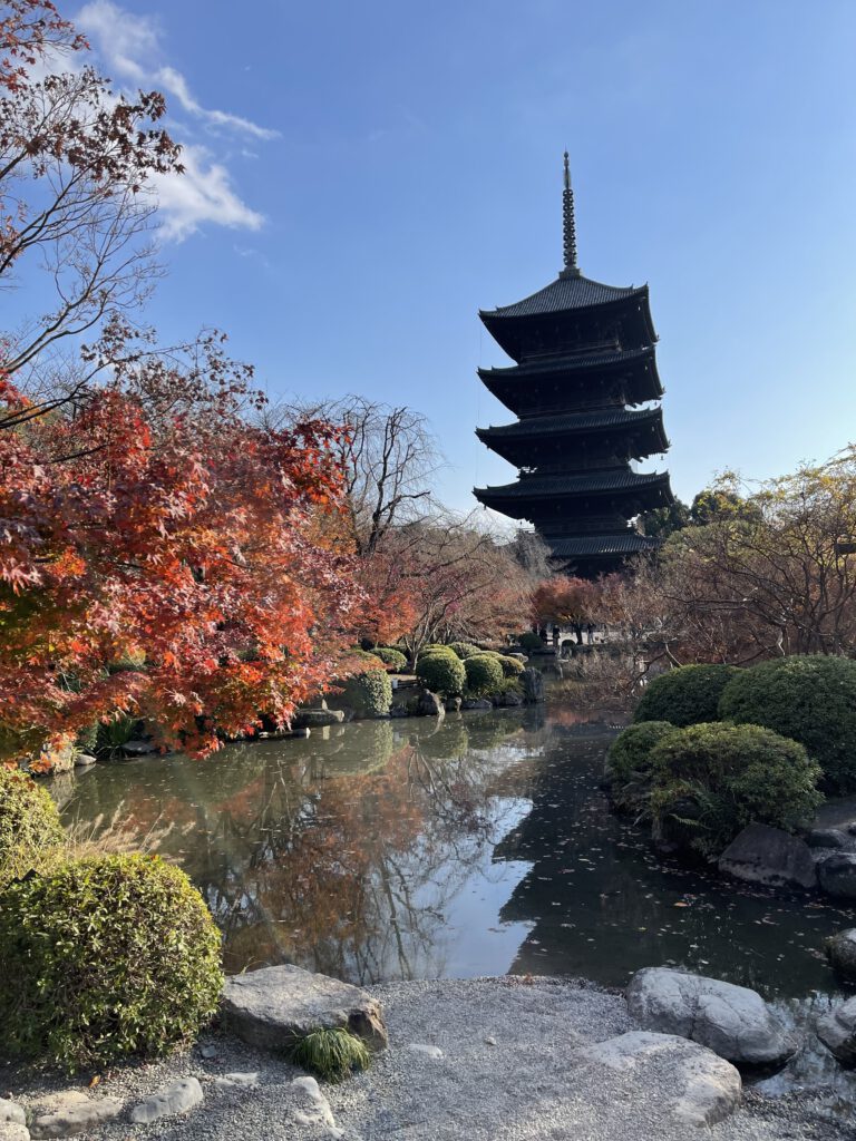 Die Fahrt war zügig, 275km/h sorgten dafür, dass ich binnen 15 geschmeidigen Minuten in Kyoto war. Als erstes habe ich mir ein Omelette mit Reisfüllung gegönnt, dann ging es zum Tō-Ji-Tempel, der mit der vierstöckigen Pagode. Vor den Toren ein Flohmarkt (ich habe nichts gekauft 😉 innen dann eine sehr schöne kleine Parkanlage mit einem alten, großen Kirschbaum, der ohne Blätter war (die Kirschblütenzeit im Frühjahr ist mir zu teuer).
