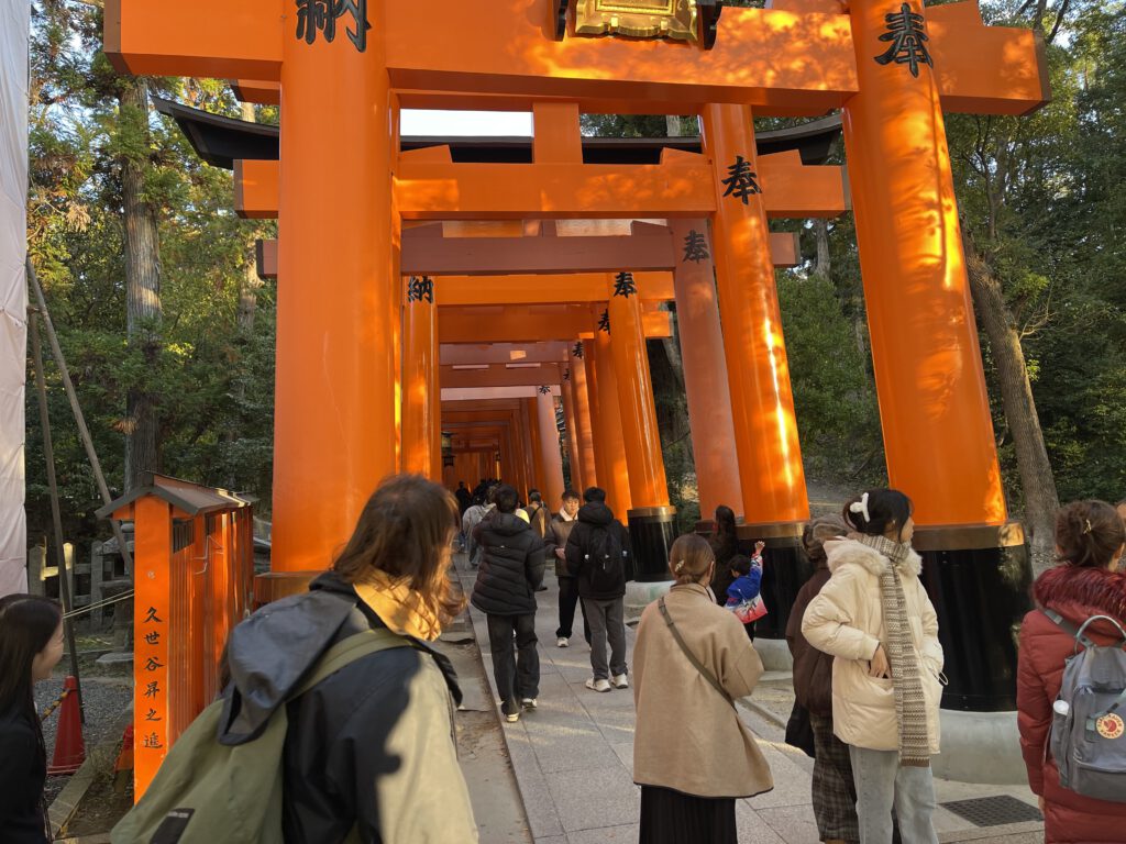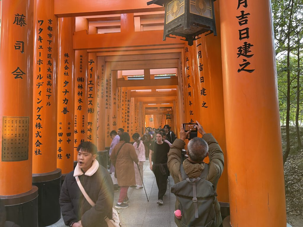 Weiter ging es danach mit dem Zug zum Fushimi Inari-Schrein, den Ihr ganz sicher alle schon mal im Fernsehen gesehen habt – unzählige rote Torii besitzt dieser Shintō-Schrein.