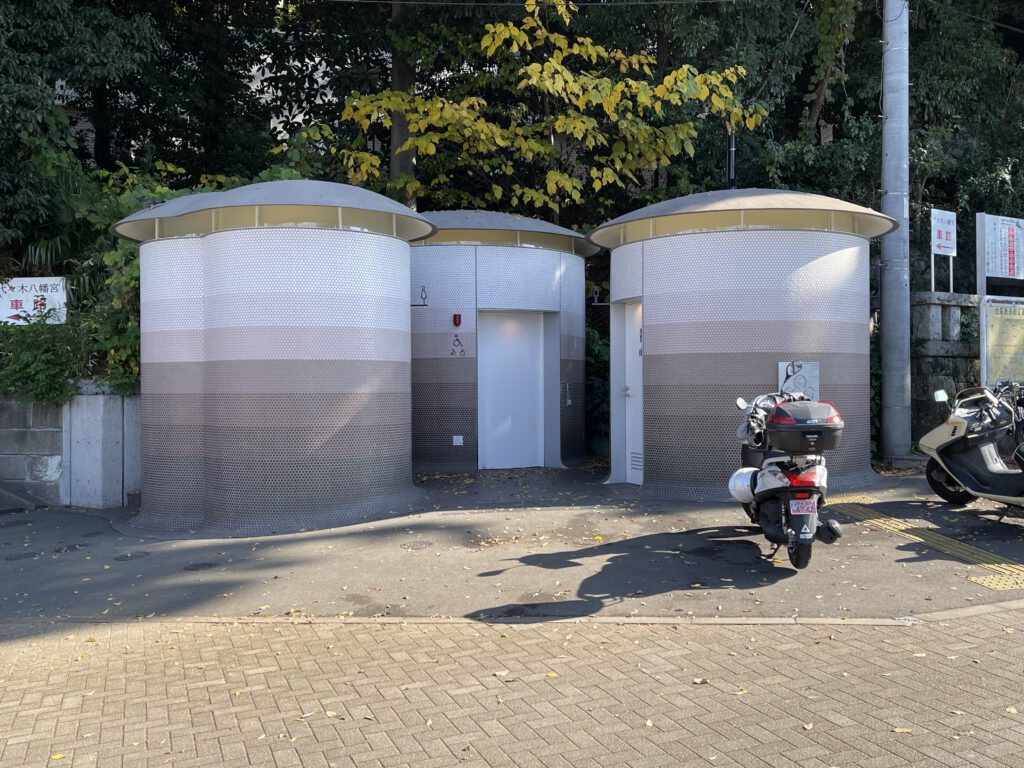 Das Tokio Toilet Team, das ich zufällig traf, hatte zwar Overalls dabei, aber die waren leider nicht zu kaufen…dafür habe ich die ersten drei Toiletten aus dem Film abgelichtet 😄
