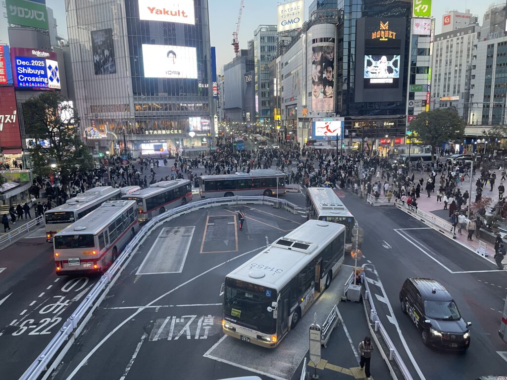 Genug Landeskunde, es ging nochmal nach Shibuya. Natürlich auch nochmal ein Blick auf die Kreuzung, also hingestellt, Musik auf die Ohren und einfach den Blick auf das Gewusel genießen.