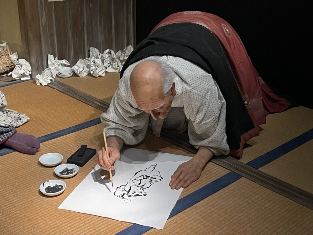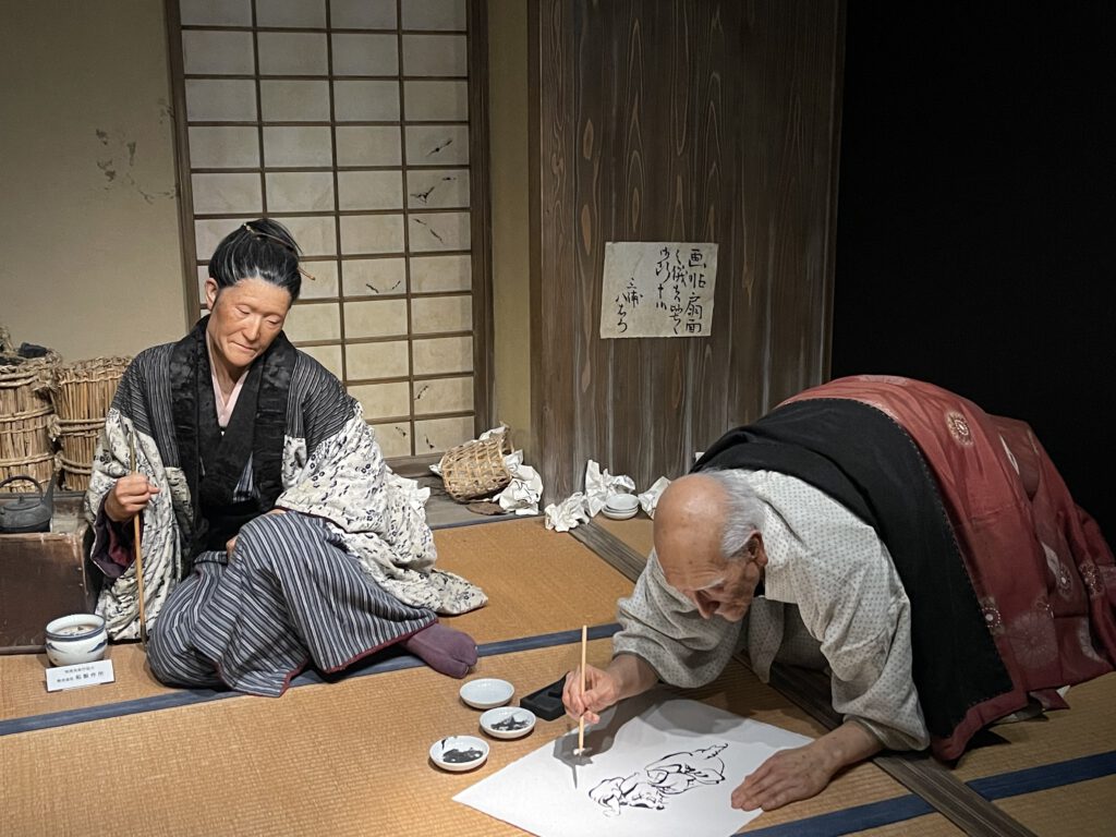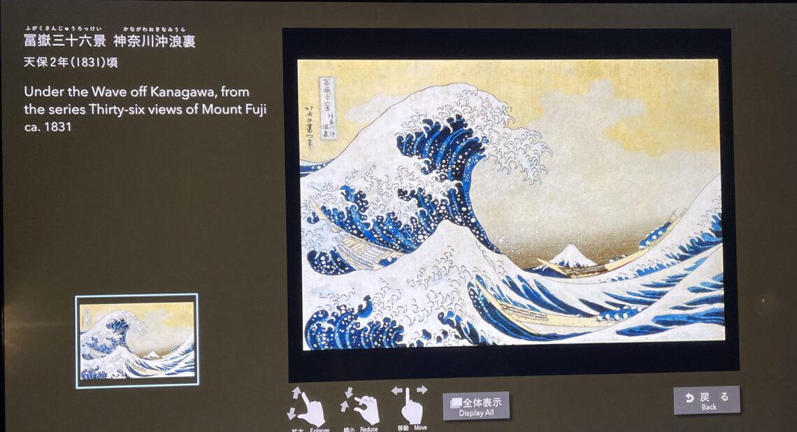 Heute stand auch der letzte Programmpunkt an, das Museum besuchen, das Hokusai gewidmet ist. Er war Künstler aus der Edo-Zeit und ist vor allem für die „Große Welle“ bekannt. Diese wurde im Holzdruck-Verfahren hergestellt, und ist Teil einer 36teiligen Serie mit Drucken aus dem Alltagsleben, auf denen jeweils der Fuji-San zu sehen ist.