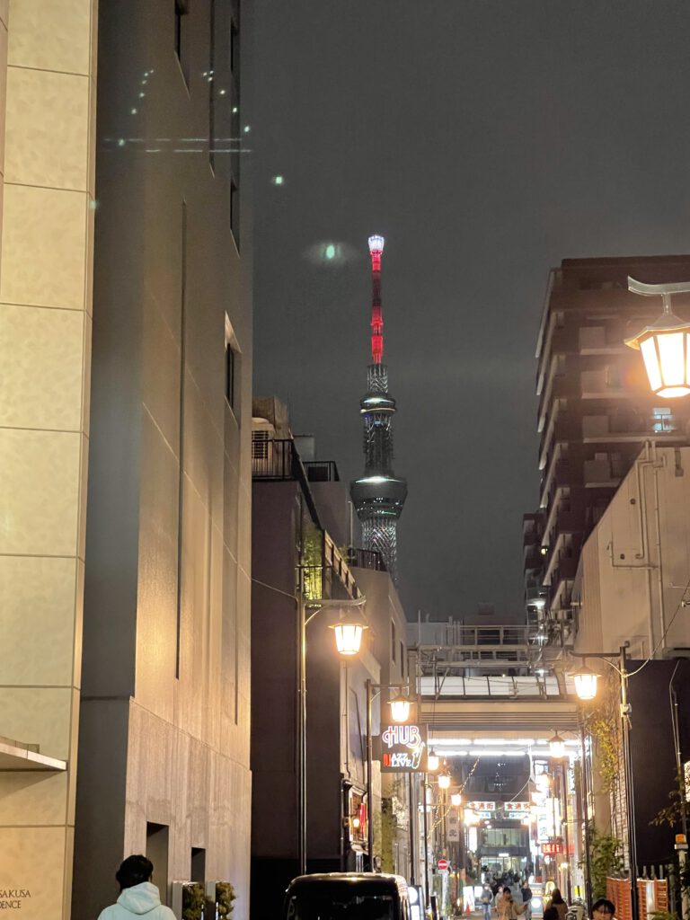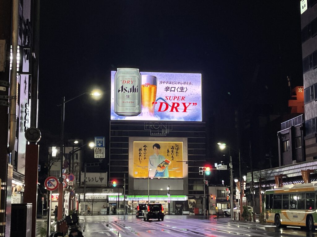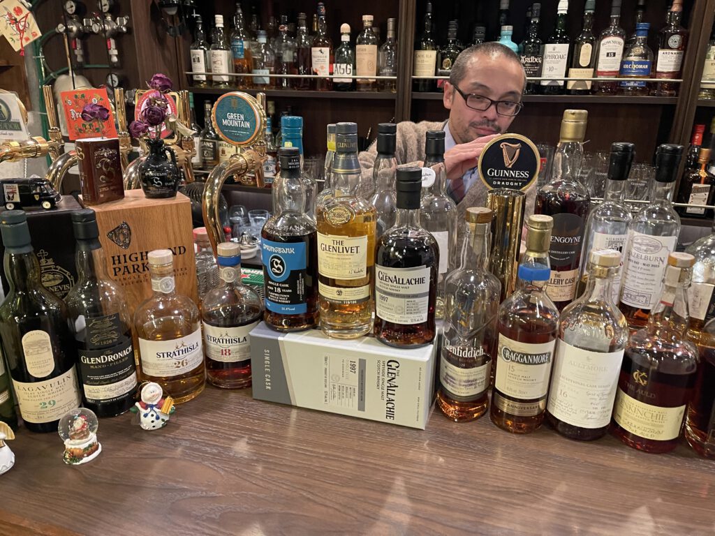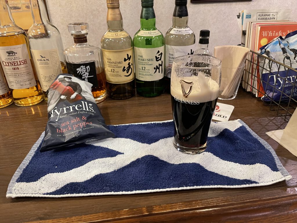 Im Don Quijote hab ich einiges geshoppt und hab den steuerfreien Einkauf für AusländerInnen genutzt, was Dinge dann 10% günstiger macht. An der Kasse hat mir dann ein Australier den Scottish Pub um die Ecke empfohlen. Der war die Empfehlung auch wert, denn er hatte eine große Auswahl an schottischen Whiskies, ich habe mich aber auf zwei Guinness beschränkt. Das Gespräch mit dem Besitzer war schön, er ist jedes Jahr für zwei Wochen drüben in Schottland unterwegs. Er wusste nicht, dass es dort Asahi vom Fass gibt, den Fotobeweis hab ich ja immer in der Tasche 😉