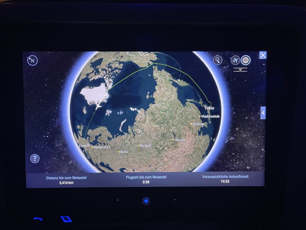 Der Check-In lief problemlos, das Boarding auch, nur kamen viele kleine Details zusammen die dann dafür sorgten, dass der Flug knapp zwei Stunden später da war als angekündigt. Und ich bin mir nicht sicher ob die Piloten eine andere Strecke nehmen mussten, denn rund um Japan hatten wir schöne Turbulenzen.